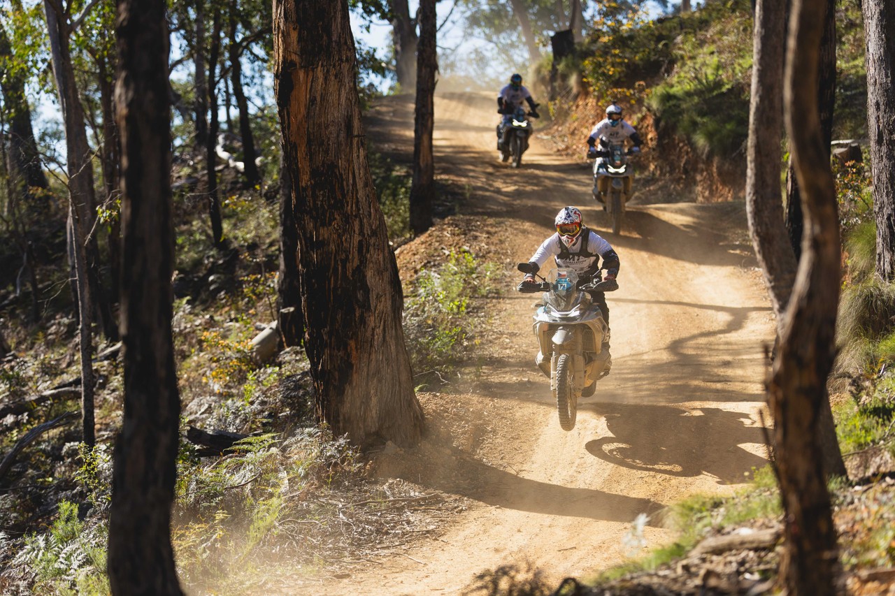 Do Yarra Walley jsme dorazili s předstihem, protože časový posun je tu 9 hodin, a to už je čas, se kterým se tělo dost těžko srovnává. A my jsme nechtěli nic podcenit, protože když jsme viděli, co si CFMOTO nachystalo, připadal jsem si jak na olympiádě. Perfektní organizace, dech beroucí branding, skvělé jídlo a péče o jezdce, jak kdybychom zrovna přijeli na šestidenní. Prostě paráda po všech stránkách. My se ale už těšíme hlavně na ježdění. Závod se jede na asi nejlepší motorce pro takovou akci - CFMOTO 800MT-X. Dvouválec od KTM s dost velkou porcí výkonu, quickshifter, tlumič řízení na rychlejší úseky a nádrž velká tak, že můžeme jezdit klidně dva dny v kuse a ještě nám zbyde.