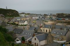 Zpět na hlavní se vymotáme kolem báze tak, abychom zbytečně nemuseli přes přeci jen frekventovanější Elgin. Jakmile přejedeme ústí řeky Spey (jo, dneska se to reminiscencema na letectví jen hemží, Rolls-Royce Spey, známý proudový motor pohánějící britské verze legendárních emerických Phantomů J), uhneme vlevo tak, abychom se dostali na příbřežní silničku. Ta se probíjí členitým pobřežím a prochází jedním malým rybářským přístávkem za druhým. Ty jen projíždíme, docela je mi to líto, protože takováto hnízda mají svoji atmosféru a tím, že se jimi jen protáhneme si ji nevychutnám. Nakonec se ale po gestikulaci za jízdy zastavíme v jednom z nich, ospalém přístavu jménem Buckie, mašiny odstavíme přímo na nábřeží.
