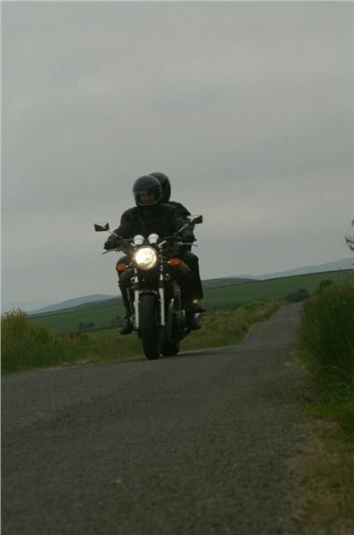 Kousek se vracíme po již jeté cestě, za Bridgendem však uhýbáme na tu vůbec nejnižší třídu silnic, co mapa zná, unsurfaced road. V praxi jsou to dvě koleje štěrku, občas prolité asfaltem, místňákům tohle zdá se bohatě stačí, no a nám musí taky, chceme-li se dostat podle plánu k Loch Awe. Taky bychom mohli později zbaběle odbočit od Carnassarie Castle, ale to by nebylo vono, že.... takže se probíjíme pastvinami, seč nám síly stačí. Mě to ani nevadí, na podobných routách jsem honil Káčko kdysi v Irelandu, Náčelník na tohle má optimální strojek, a Bekr, ten zdá se taky zvládá. Mám jen trochu strach o Jiříka, přeci jen, ušlechtilá italská kráska a tahle drsná severská routa, plus jeho přeci jen menší vzrůst... no nic, jedeme dál