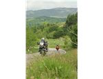 Zcela podle přísloví, že nábližka trvá déle, se motáme opětně „bublinkatou“ silničkou, vedoucí bezesporu půvabným a opuštěným údolím. Nemám čas to ani moc vnímat, tryskojezdci vepředu mi opět začínají mizet. Vem je čert, přeci se kvůlivá ním nerozmáznu, tak usoudím a zvolním na mně přijatelné tempo, tak, abych se mohl i trochu koukat kolem. Zabloudit už teoreticky ani prakticky nejde, tož ať jedou, někde, nejpozději v kempu, se opět potkáme.