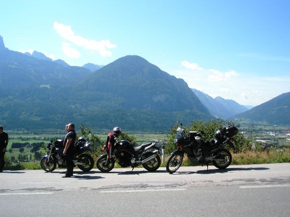 Odjezd od hotelu byl stanoven na 8:00, neboť nás paní domácí varovala, že bude při takovém počasí nával a čím dříve vyrazíme, tím méně bude nahoře lidí. Neváháme ani minutu a ihned letíme sbalit potřebné věci. Pro jistotu vybavujeme kombinézy zimními vložkami a už se scházíme u motorek k odjezdu. Projíždíme ranní mlhou a v hlavě se mi honí, jaké bude dnes počasí. Přiznám se, že mě ta mlha dosti odrazuje. Projíždíme několik měst, přichází mírné stoupání a po mlze ani památky. Je to naprosto neuvěřitelné, ale najednou se před námi otvírá nádherný pohled nahoru na Alpy a my zcela ohromeni tou krásou zastavujeme na prvním rozšířeném stání, abychom se pokochali tou krásou a stvořili pár fotek na památku. V tu chvíli jsem si myslel, že je to všechna krása, kterou můžou hory nabídnou, ale to jsem ještě nevěděl, co mě čeká nahoře