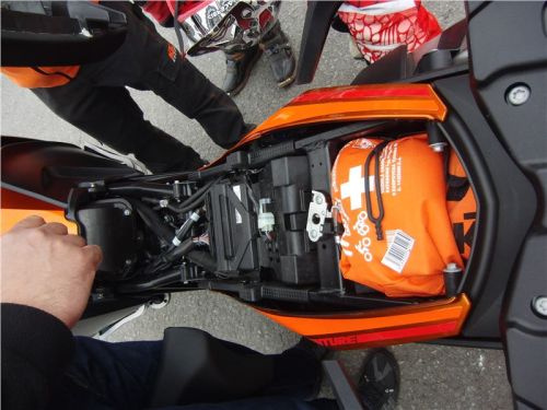 Chování předního kola je navíc pojištěno citlivým tlumičem řízení. To vše zabaleno a usazeno na drátěných kolech s pneumatikami 120/70ZR19 a 170/60ZR17 Continental TrailAttack 2 - první peumatiky na cestovní enduro vyvinuté na max. rychlost 240 km/h. Antihoppingová spojka a ride-by-wire plynová rukojěť doplňují příjemný a bezpečný pocit z jízdy na nové KTM. Tolik k síle motoru a jejímu krocení. Mrkněme se ale také na pohodlíčko, které nás při dlouhých cestá jistě bude zajímat.