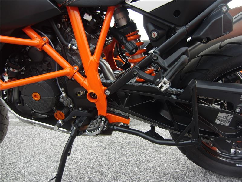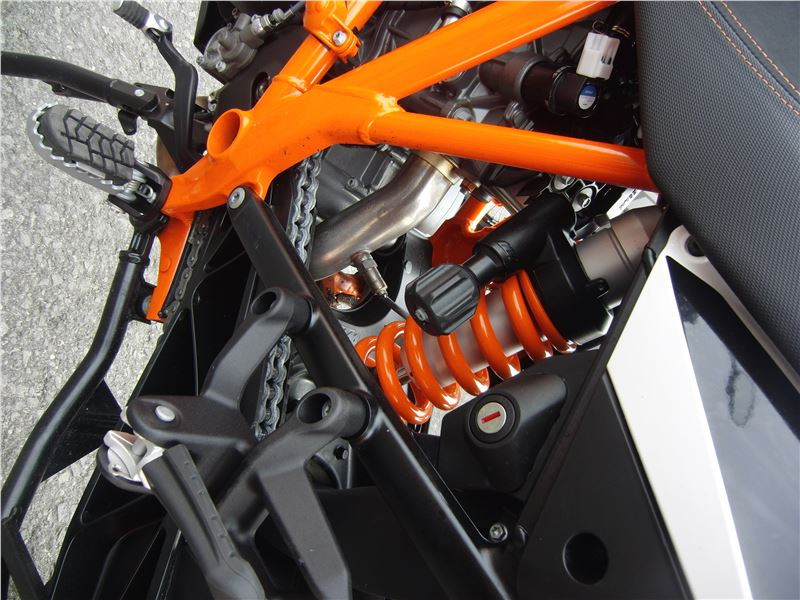Na první pohled mě zaujala, oproti předchůdcům, špičatější přední maska s LED diodami pro denní svícení, mohutná koncovka výfuku a celkově lehce působící stavba celého motocyklu. Zdvihový objem LC8 je 1195 ccm a dává tušit, že stádo koníků vypuštěné otočením plynové rukojeti bude velmi početné. V KTM to zaokrouhlili na pěkných 150, aby se to dobře pamatovalo. A to už je pořádná síla, které se musel přizpůsobit i zbytek motocyklu.