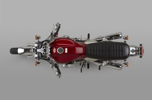 Boční panely jsou vyrobeny z kartáčovaného hliníku s texturou „vlasových čar“, zatímco sedlo je dobře čalouněné a pohodlné. Na něj navazují plynulé linie čistě provedených chromovaných madel a chromovaný ocelový blatník se zaoblenějším průřezem. Stupačky pro jezdce i spolujezdce jsou upevněny na menších závěsech z hliníkové slitiny, zatímco díky delšímu bočnímu stojanu se stroj snáze dostává do vzpřímené polohy.