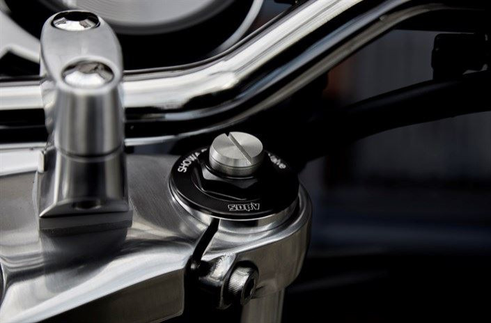 S odkazem na moderní téma café racerů jsou boční panely zhotoveny z lisovaného hliníku s texturou „vlasových čar“, zatímco sedlo se směrem vzad zužuje a dodává stroji štíhlý a sportovní profil. Na něj navazují plynulé linie čistě provedených černých madel a chromovaný ocelový blatník se zaoblenějším průřezem.