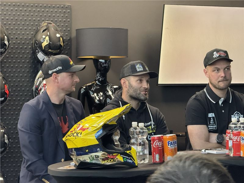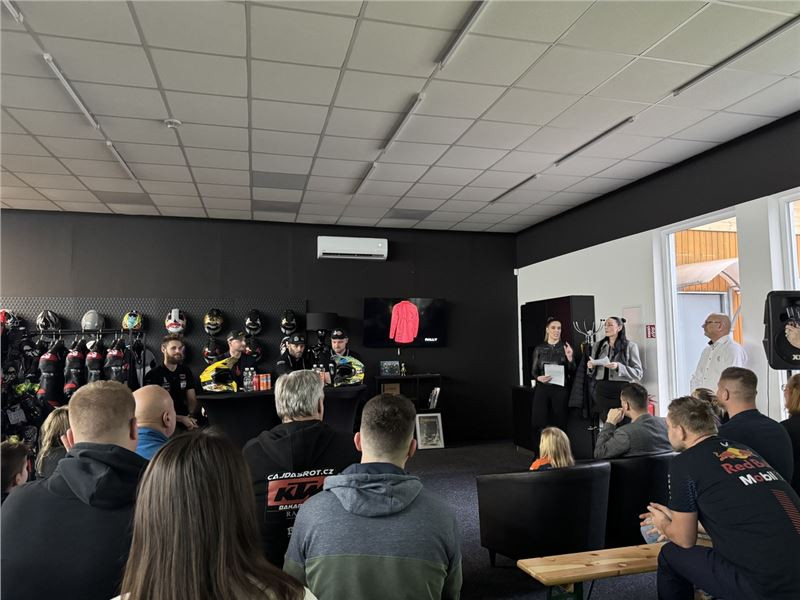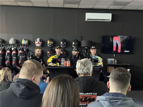Součástí besedy byla samozřejmě i debata o vybavení. Pořadatelem besedy byla společnost PSí Hubík, a jelikož všichni jezdci jeli v oblečení šitém na míru právě od této české firmy, tak moderátorky zajímal i pohled na jejich komfort.