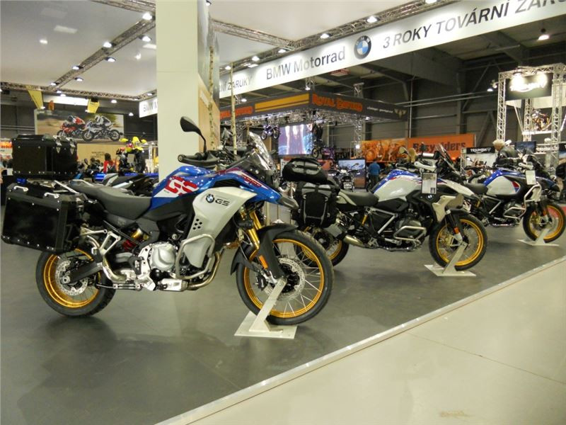 BMW má mnoho novinek, mezi které patří celá řada s motory 1250 boxer. Nový motor má variabilní časování ventilů ShiftCam a mělo by to být za jízdy hodně znát. Loni jsme měli možnost slintat nad speciální limitovanou českou edicí R nineT a letos je opět něco nového. Stojí tady žlutý dakarský speciál Honzy Brabce odovzený z modelu Urban G/S. K vidění je i GS 850 Adventure.