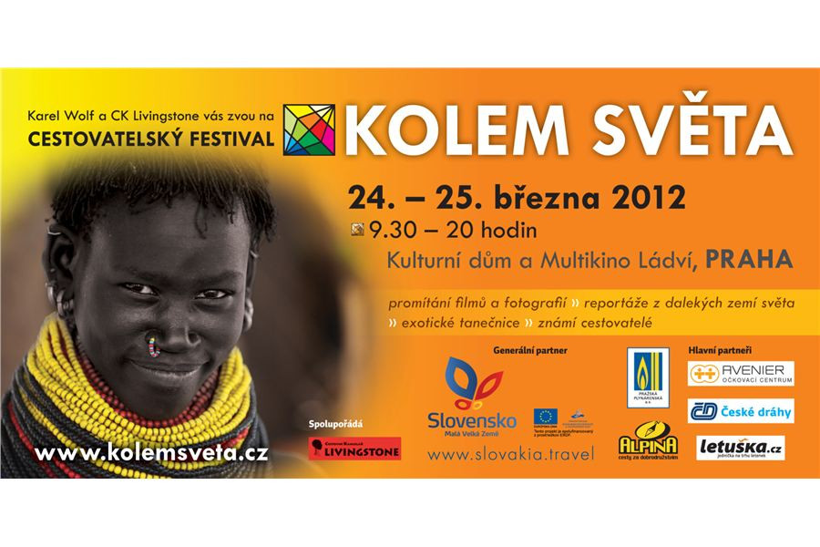 Cestovatelský festival KOLEM SVĚTA s téměř 50 přednáškami na jednom místě proběhne v Praze tradičně v Kulturním domě a Multikině LÁDVÍ ve dnech 24.-25. března 2012. Součástí festivalu bude i divácká soutěžní přehlídka krátkých hudebně obrazových snímků SLIDESHOW AWARDS, která je otevřená široké veřejnosti. Na festivalu se objeví geolog a spisovatel Vladimír Plešinger, etnolog Miloslav Stingl, cestovatel Rudolf Švaříček, filmař Viliam Poltikovič, fotograf Václav Špillar, muzikant Martin Kratochvíl, lékař Rastislav Maďar, zoolog Vladimír Lemberk a řada dalších. Přednášky, besedy, autogramiády a diashow budou doplněny o pestré taneční vystoupení (indonéské, indické a cikánské tance).