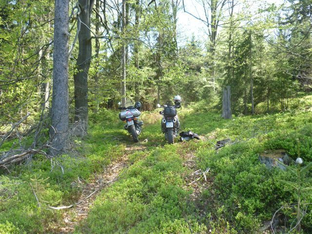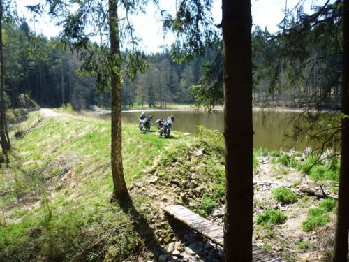 Po včerejším vzoru je počasí jak vystřižené ze žurnálu a doprovází nás velmi příjemnými Novohradskými horami. Cestičky spíše pro cyklisty a sběr „kešek“ nás baví. Čas utíká a my jsme najednou na Šumavě. Tady na zákazové cedule dáváme dobrý pozor, využíváme proto převozu a další navigační bod nás čeká u obce Zátoń. Místní hospoda je mi dobře známá. Pojíme tu, pokocháme se fotografiemi z naší předchozí návštěvy a konečně se odtud dovolám synkovi. Je po kvalifikaci a čeká ho první rozjížďka. Máme to zhruba třicet kilometrů, to stíháme.
