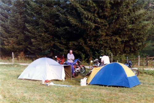 Probudili jsme se všichni skoro najednou do typického rána v horském údolí, t.j. kvanta rosy, lehká mlha pomalu prozařovaná ranním sluníčkem, příjemně chladno, prostě paráda. Motorky i stany byly mokré skrz naskrz, a tak nebylo proč pospíchat s pakováním. Uvařili jsme si snídaničku a pomalu skládali tábor. Ještě jsem v klidu a pohodě použil službičky místního WC za hospůdkou a tak okolo devíti jsme se mohli vydat na zpáteční cestu do Leondingu. Ta samozřejmě ani dnes nebude přímá, ale bude se kroutit dle zajímavostí. Bohužel se dnes prakticky rozloučíme s Alpami, naše cesta a hlavně její druhá část už bude spíše po rovinách i údolím Dunaje.