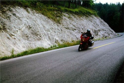 Vrátili jsme se kousek zpět po hlavní silnici, vystoupali do průsmyku Klostertaler Gscheid (767 m n.m.) a sjeli údolím Klostertal až na spojnici se silnicí „21“. Zde jsme zahnuli vlevo a několika táhlými, avšak přehlednými serpentínami vyjeli do průsmyku Rohrer Sattel (853 m n.m.). Za průsmykem však začala objížďka a asi dva kilometry klasického makadamu, což je věc v Rakousku nevídaná. Takže jsem se coural pomalu byvši si pamětliv včerejška, kdy ke konci etapy jsme projížděli pod typickým lavinovým přístřeškem, jehož vozovka byla také makadamová a ještě bahnitá. Nu a na v ní zabalený velký šutrák jsem při vyšší rychlosti najel předním kolem a měl jsem plné ruce práce se zkrocením náhle zdivočivšího motocyklu.
