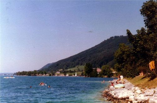 Zaplavání přišlo vhod právě ve vhodnou dobu, odpolední slunce totiž dělalo co mohlo. Ráchali a cachtali jsme se drahnou dobu, někteří z nás si i zaskákali z úzkého dřevěného mola vedoucího hluboko do jezera. Já sám jsem plaval jenom chvilku, zbytek času jsem strávil sedě na lavičce ve stínu a pozorujíc ruch okolo. Přitom jsem odháněl zuřivě vypadající ovády, kterých zde bylo dosti, asi jako kdyby byl za nejbližším kopcem řádný kravín. Byvši zde bez partnerky, pozoroval jsem místní spoře oděné krasavice a hodnotil společně s Jirkou jejich půvaby. V zájmu objektivity lze jen konstatovat, že v tomto směru (bohužel ovšem jednom z mála) jsme oběma nohama v Evropě pevně usalašeni, ba co dím, také na předním místě. Zdejší krasavice by u nás splynuly s průměrem a jen málo ze zdejších dívek by mezi našimi stály za ohlédnutí. Nicméně, čas bylo nutno vyplnit, a tak jsme se dívali :-).
