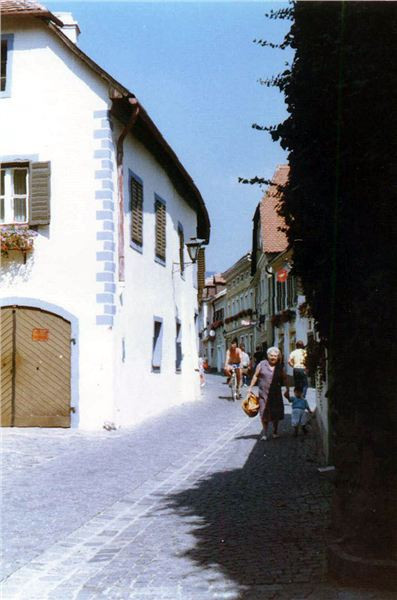 Kraj okolo Dunaje je mimochodem také plný vinic už od nepaměti a na místních restauračních zařízeních je to vidět. Moc rád bych zdejší vínka ochutnal (nepančují-li to doposud glykolem jako kdysi), ale není jednak čas a pak hlavně šilasy. Ve městě jsme se roztrhli, protože jsem dostal od Helmuta úkol mu zakoupit jeho oblíbené cigarety a ve staré zástavbě byl docela kumšt najít trafiku s žádaným sortimentem. Musel jsem projít skoro celou hlavní uličkou, než jsem ji našel.