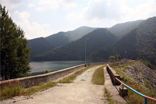 Vše ale má svůj konec, i tahle hnusná cesta. Vyplivne nás u sypané přehradní hráze, kde už se na silnici objeví sem tam beton. Je to ale víceméně z bláta do louže, na totálně rozbitém betonovém krytu se pomalu jede hůř než před chvilkou.