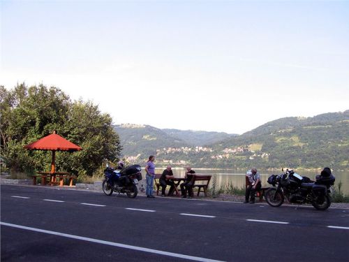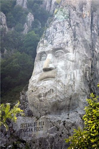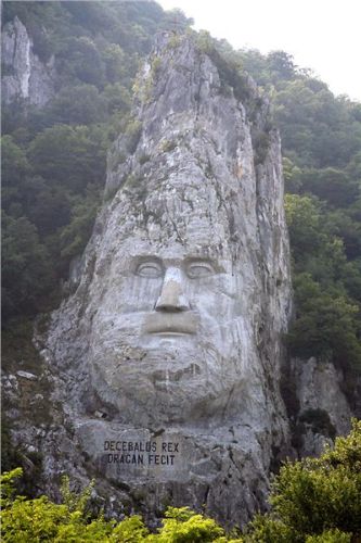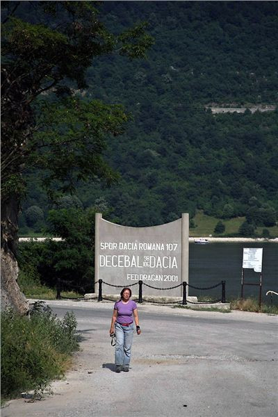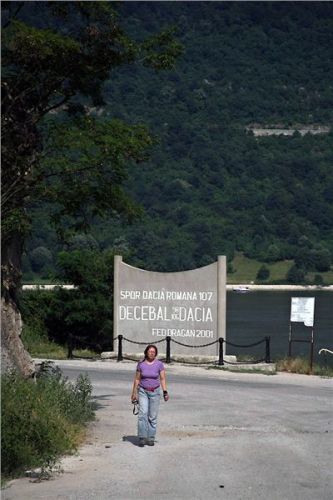 Popravdě, údolí Dunaje mě až tak nenadchne. Jestli je to jeho vyprahlostí, orientálním bincem větším než obvyklým, nebo snad mou přehřátostí – možná od každého trošku. Rezultátem je, že se jen tak pasivně vezu na ocasu a jediné, co mě zajímá, je, kdy dneska tohle všechno skončí. O mém rozpoložení svědčí taky to, že z tohoto úseku cesty nemám jedinou fotku.... Co si pamatuju, jen, že jsme zastavili u jedné z místních atrakcí – ve skále vytesané busty místního vládce Decebala (něco jako jejich Přemysl Oráč – tedy dácký vůdce a náčelník, protivník římské říše a první historicky doložená osobnost zdejšího regionu). Bohužel, přijíždíme v totálně nepříznivém čase – zapadající slunce je přesně za skálou s hlavou, což pro fotografy není až tak pravé ořechové.