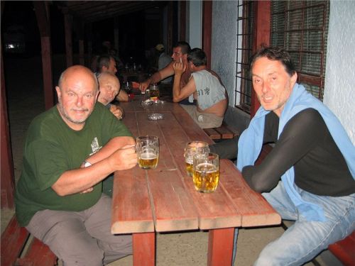 Takže obsadíme jeden volný stůl, uvnitř si dáme natočit jedno orosené (dá si dokonce i Zuzka, což je tedy ale ZNAČNĚ neobvyklé, Jindra jako jediný opět odolá...) a pak již zasedneme a další hodinku a něco strávíme ve velice příjemné společnosti místních. Pokecá se o všem, páni si dají ještě repete (pitný režim....) a po jedenácté se hezky vydáme na pouť do postýlek. Uvnitř je sice trochu dusno – venku by se spalo líp – ale přesto usínám jako špalek. Dnešní den stál za to, a taky dal zabrat...