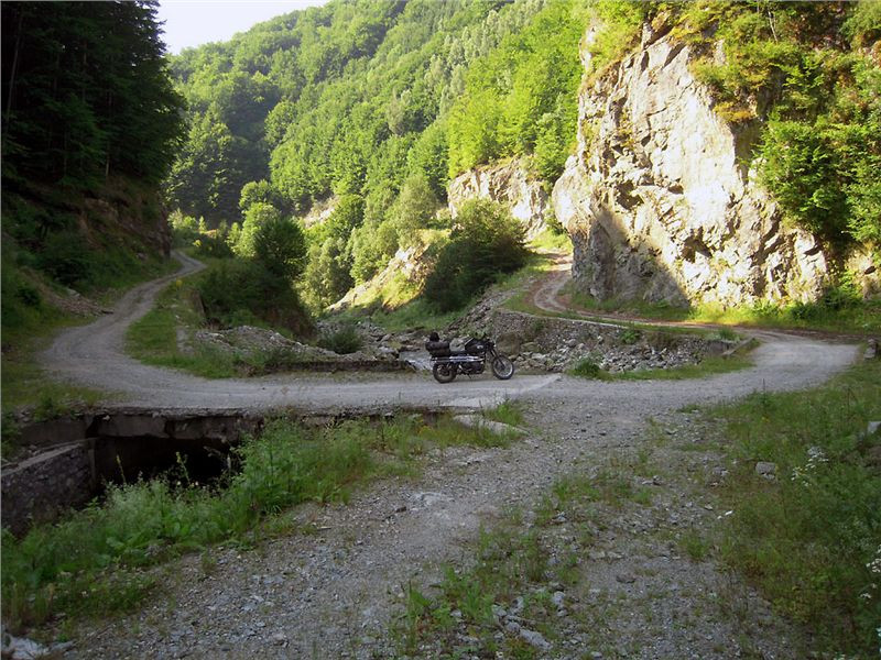 Cesta nahoru do průsmyku Pasul Jiu-Cerna (1391 m n. m. podle mého, na mapě psáno je 1380) je jedním z vrcholů této motopouti. Jiskřivé ráno, nikde nikdo, od spolčenstva si dám lehký odstup a stoupám si podle svého serpentínami celkem slušné šotolinky. Pěkně za dvě, olej má dobrou teplotu, stejně jako já, tedy si to užívám.