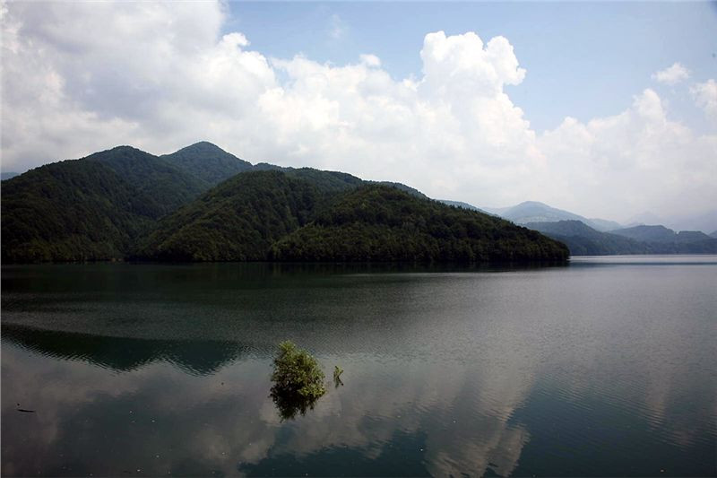 Další více než hodinku se prodíráme klikatým pravým břehem přehradní nádrže. Tahle cesta je víceméně k prdu. Hustý a vysoký les absolutně znemožňuje jakýkoliv výhled na jezero, vlastně i na hory nad námi, je to jen takový tunel, akurát že je zelený a vlhký. Cesta je dešti zdevastovaná a pokrytá obrovskými a hlubokými loužemi. Kde nejsou louže, je hluboké mazlavé bahno. Takže lábuš, no alespoň se naučím brodit. Však taky jedna óbrlouže mě skoro dostane, to když už si myslím, že je zvládám, a začnu bejt zpychlej. Ale ustojím to. Zjevit se spolčenstvu jako zabahněnej Mišelín, to by asi moje zbytnělé sebevědomí nerozdejchalo.