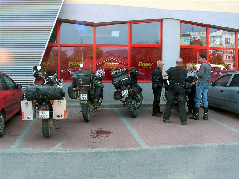 Po dvaceti kilákách dojedeme na kraj Orşovy, kde přistaneme u místního Penny. Jasně, nákup zásob – po dvou dnech v horách už jsou špajzy poloprázdné :-). Nutný a krátký pobyt v klasickém marketu (nojo, už tohle dorazilo i do Vlkodlak...) mě paradoxně docela postaví na nohy, neb uvnitř je mnohem líp než v dusném a parném odpoledni. Při odjezdu se ale zase naprdnu, neb když shodím mašinu ze stojanu, zůstane mi sedlo v ruce. Hmm, jeho zámek nevydržel vlkodlašské vozovky a prostě se rozpadl. Jedna půlka zůstala na sedle, druhá se válí kdesi v Retezatu. Naštěstí funkci to nijak nenaruší, stačí sedlo přitáhnout rezervním gumicukem a je to. Řešit se to bude doma.