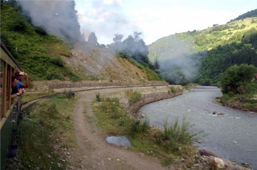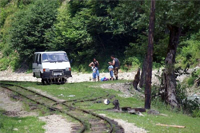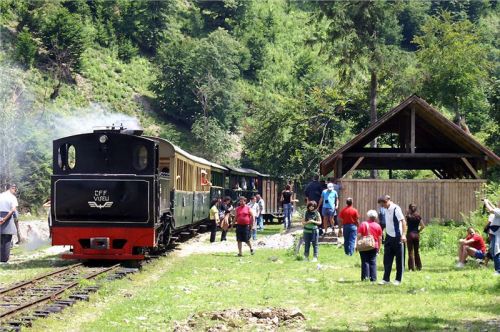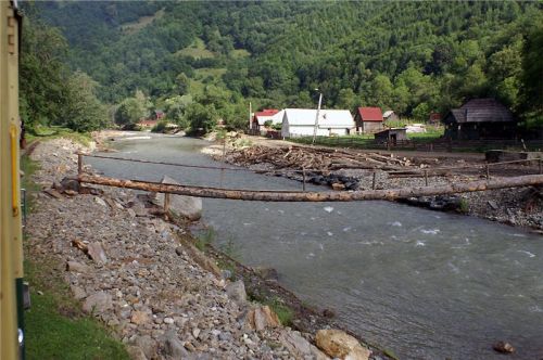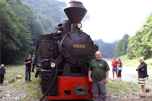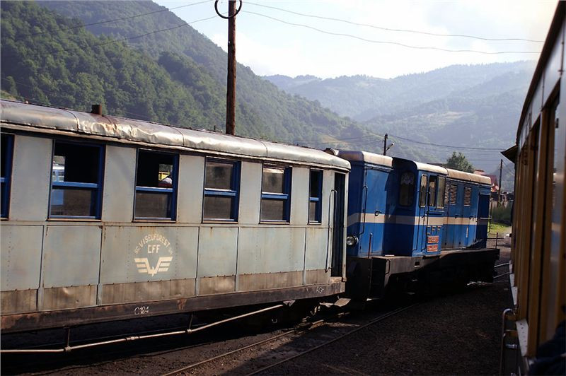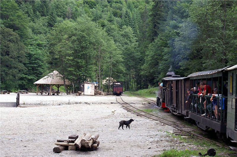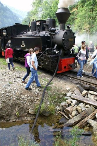 V jedenáct hodin dorazíme na konečnou stanici výletních vlaků. V zákrutu řeky je na mohutných nánosech vystavěno několik piknikových přístřešků, trať zde má trojkolejnou výhybnu a pokračuje dál, kam zajíždí už jen pracovní soupravy. Budeme zde stát asi devadesát minut, než se vlak vydá na zpáteční cestu. Posádka vybalí gril, zásoby a už se hoduje. Já ani hlad moc nemám, ale nepohrdnu dvěma dobře chlazenými místními pivánky Timisoara – chuť celkem přijatelná, tedy, hlavně že je studený. Zalezu si s nimi do chládku všudypřítomného lesa, sedím na lavičce, popíjím, nasávám atmosféru a je mi prostě lidsky fajn. Pozoruju cvrkot kolem objíždění soupravy lokomotivou, nakládání dříví (tím se tady zcela samozřejmě topí), projdu se kus dál po trati a přestávka uteče jako voda v nedaleké řece.