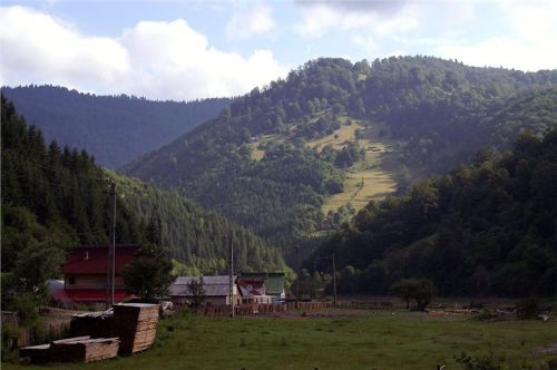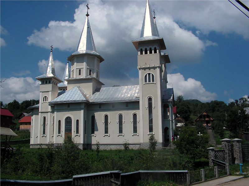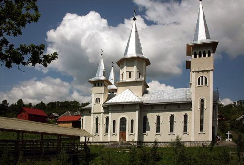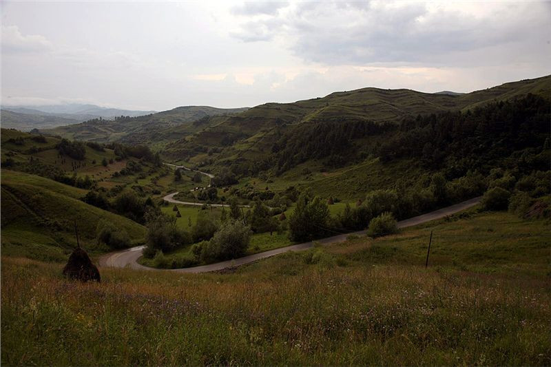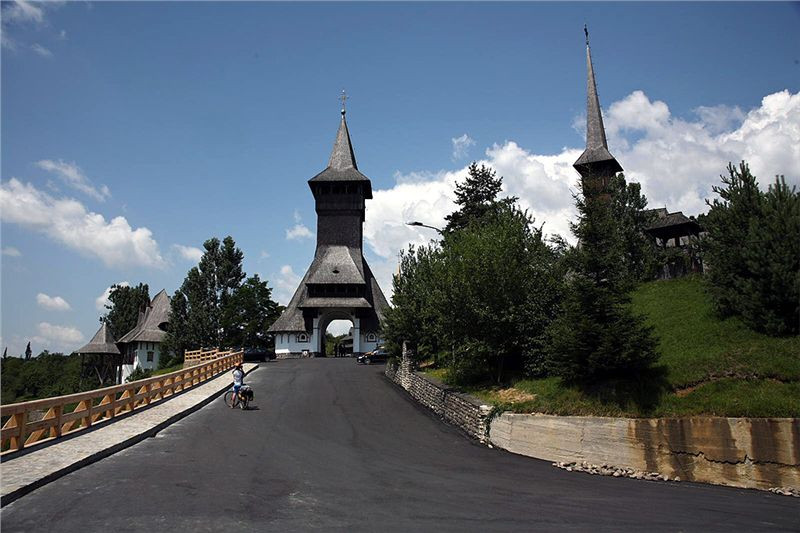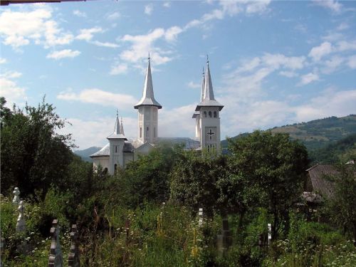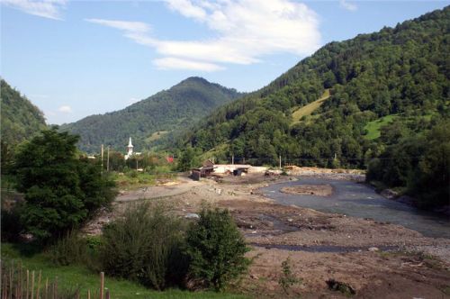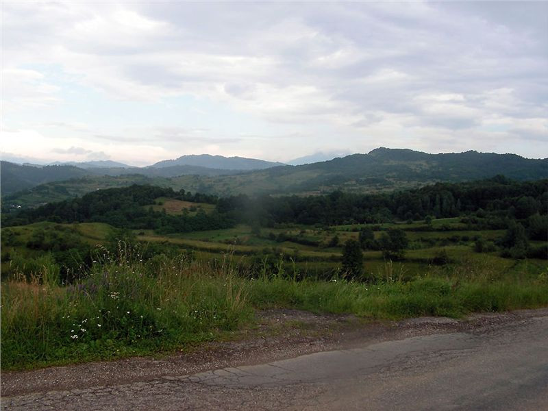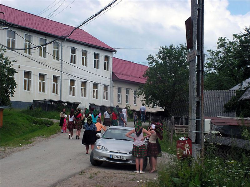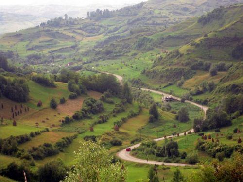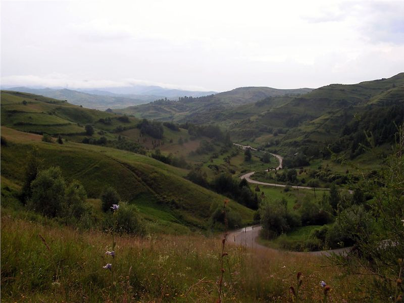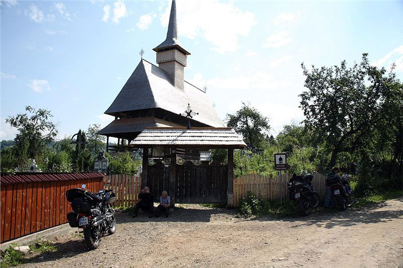 Za městečkem Viseu de Sus po chvíli odbočujeme před Moisei z hlavní vpravo a vjíždíme do kopců. Po levé ruce máme pohoří Rodnei s nejvyšší horou Pietrosol Mare, silnice se příjemně vlní, kvalita není až taková, ale nevadí, motorky to snesou. Projíždíme vesnice, je neděle, vidíme spoustu žen v barevných sukních s šátky kamsi štrádovat. Chodníky nejsou, jdou po silnici. Do kostela. Taky zde jsou velké propracované dřevěné portály nad vjezdovými vraty, které jinde ve městech skoro již vymizely.