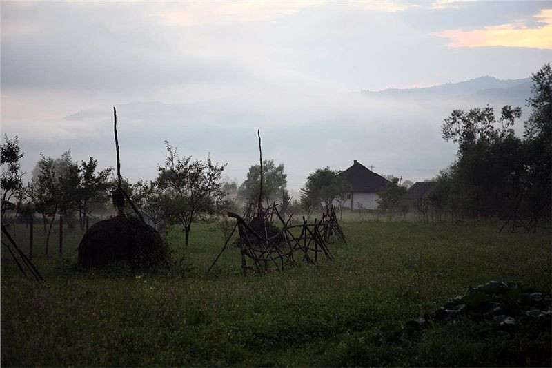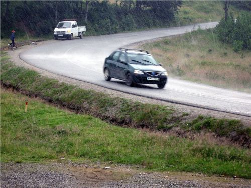 Pokračujeme přes Budesti k průsmyku Cavnic, kde mají Rumuni zimní lyžařské středisko. Serpentiny, pěkný asfalt, ale začíná pršet. Ještě před průsmykem stavíme a čekáme, až bouřka přejde. Po chvíli opravdu hromy a blesky končí, ale vytrvale prší. Ještě čekáme, pozorujeme prodavače borůvek, kteří jsou v zatáčce u silnice, jak přikrmují uhasínající oheň a prodávají. S námi čeká pod střechou polorozpadlé osamocené budovy i skupinka lidí, kteří zde piknikovali. Zbylá část rodiny je v autě. Posléze se i ostatní nacpou do auta, je jich tam snad sedm a odjíždějí, auto táhne břicho po zemi.