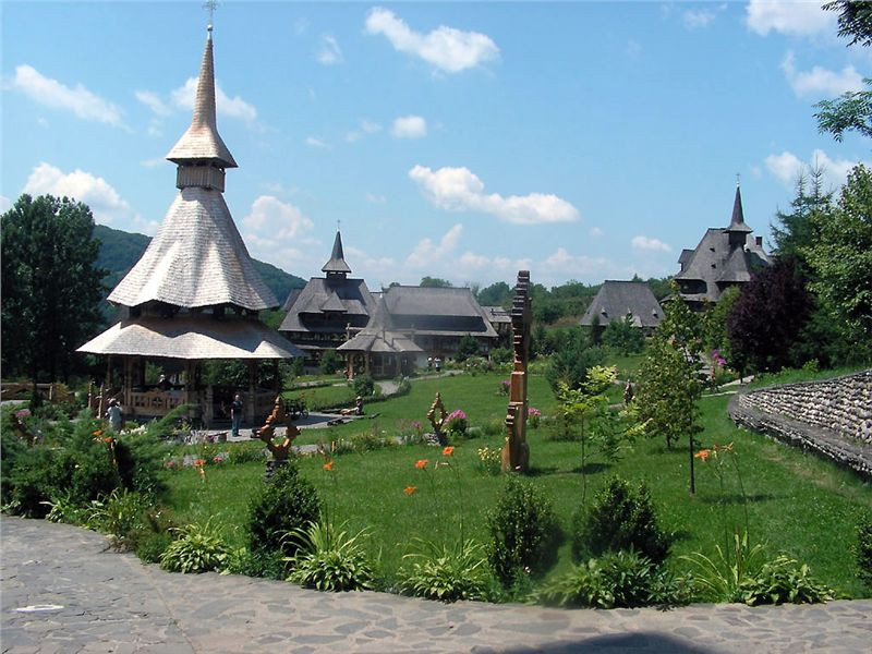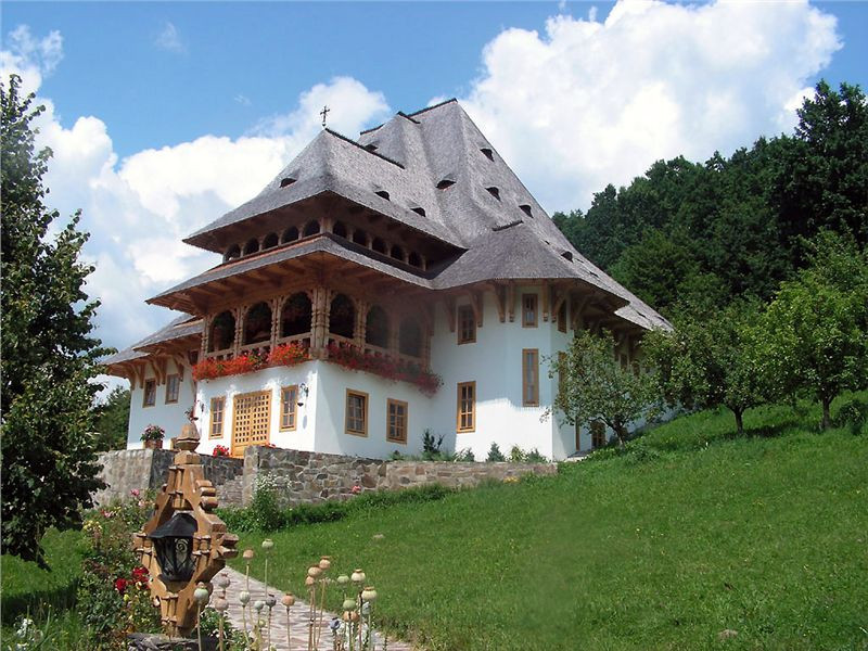 Není, jsme na něm, napojujeme se zpět na hlavní a dojíždíme k dalšímu monastyru Barsana, taktéž UNESCO. No to je něco! Komplex mnoha dřevěných staveb, vše upravené. Koukáme jak vejři na auto uvnitř komplexu (parkoviště je mimo) s otevřenými všemi dveřmi a kapotami. Po chvíli nám to dojde - oni ho světí. Nu což, dříve to byl dobytek, teď auto... Zase okoukneme stavby, jeptišku a mnicha, nebo jak se tito věřící nazývají, načerpáme z pramene uvnitř areálu vodu.