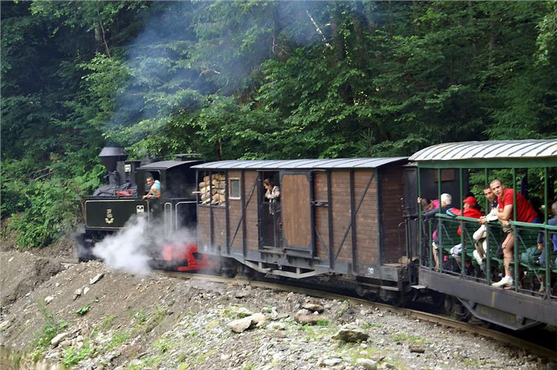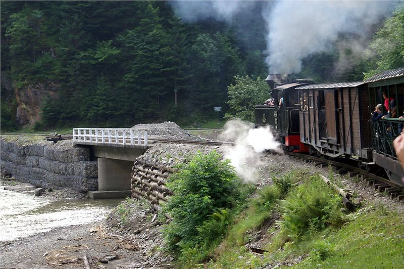Zamávám zbytku, mizícímu v oblacích páry, a dvě hodinky pouti tam jsou přede mnou. Každým pórem si vychutnávám tu pravou echt - dampf nostalgii. Zdejší železnice totiž není „jen“ nějaká turistická atrakce, ale dodnes pracující a sloužící lesní dráha, vydělávající si na sebe svážením dříví z nevyčerpatelných lesů povodí řeky Vaser. Je jasné, že i turistický provoz jistá aktiva společnosti přináší. Vlak je prakticky zaplněn, inu prázdniny a víkend, kdy jindy by už měl být plnější... Osobně bych raději jel vlakem pracovním (prý to občas po dohodě jde), ale to by nesměl být víkend. Ale i tak je to paráda.