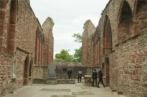 Jak je to zde obvyklé, opatství je ruina, ovšem velmi dobře zachovalá J. Jako u mnoha jiných je jeho stav plodem náboženských různic sedmnáctého století a vítězství těch protestantsky orientovaných. Mne osobně ale daleko víc než vlastní stavba osloví její zasazení do města, zahrada opatství a atmosféra místa. Takže si ji dosytosti vychutnávám, navíc i díky tomu, že zde není tak dusno a vedro jako ve městečku. Pěkný je obzvláště kontrast vínově červeného stavebního kamene zdí, šedé žulové podlahy a zeleně koldokola. Takže, docela spokojenost.