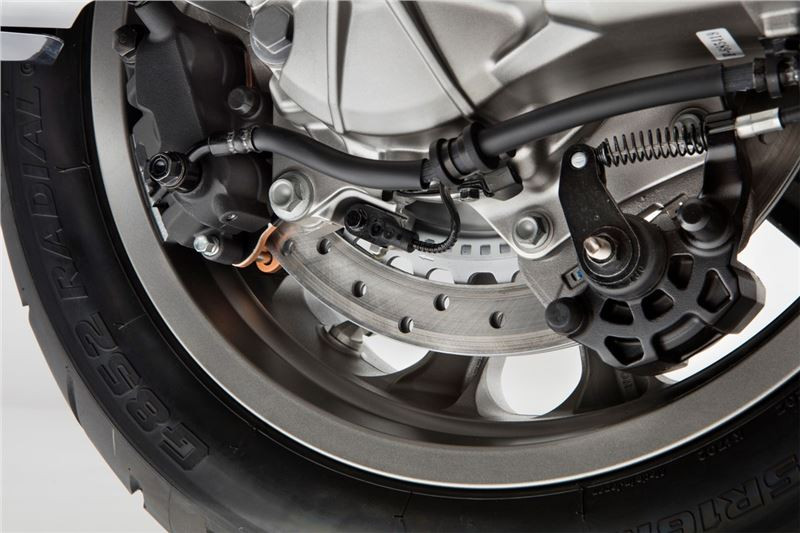 Duální kombinovaná brzdová soustava (Dual Combined Brake System – D-CBS) optimálně rozděluje brzdnou sílu mezi přední a zadní kolo. Zatímco u předchozího modelu byl systém ABS ovládán dvěma motory, u nové verze byly oba tyto motory nahrazeny jedním menším a lehčím cirkulačním ABS modulátorem, jenž byl integrován do řídicí jednotky brzdové soustavy a umožnil snížení hmotnosti celého systému o 1,3 kg. Nový systém také umožňuje propojení s aktuálně zvoleným jízdním režimem, na základě kterého se charakteristika brzd pro vyšší bezpečnost přizpůsobí jízdní situaci. Dva 320mm přední kotouče jsou vybaveny 6pístovými třmeny, zadní 316 mm kotouč je opatřen třípístovým třmenem.