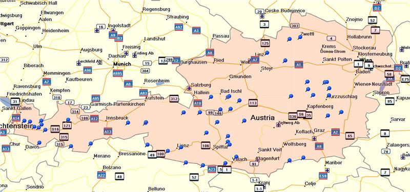 Sada souřadnic motorkářských hotelů v Rakousku. Jedná se o hotely z knihy Alpský motorkářský průvodce 2012 - Rakousko.