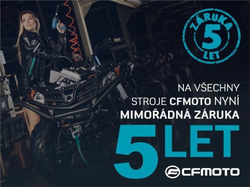 Všechny motocykly CFMOTO a čtyřkolky CFMOTO Gladiator mají nyní záruku 5 let !!!