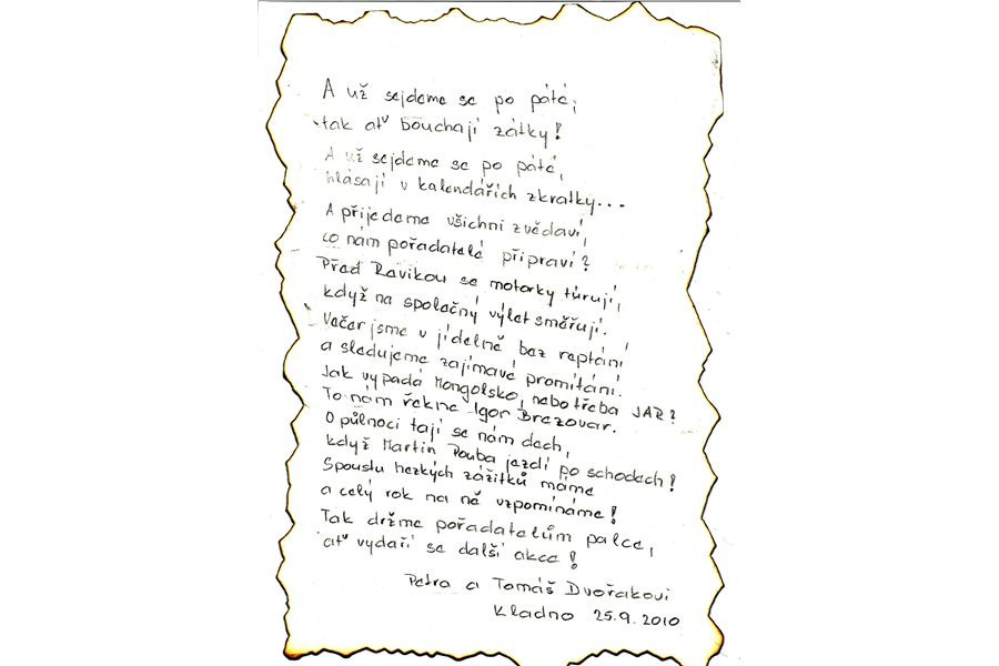 A jako upoutávku najdete u titulku listinu, kterou jsme minule obdrželi od našich pravidelných účastníků Dvořáků...