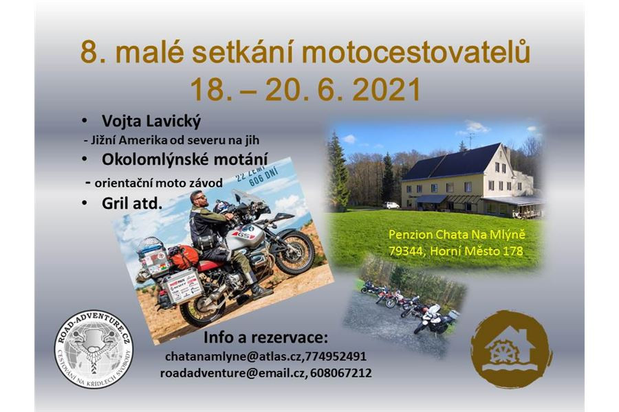 Zveme všechny cesťáky i necesťáky na 8. malé setkání motocestovatelů do penzionu Chata Na Mlýně.