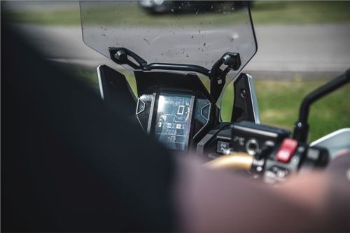 Adventure Sports je těžší než standardní model a váží 243 kg, váha je však skvěle rozložená a nijak nepřekáží. Nepřekáží ani lanko plynu ve výhledu na displej, jak tomu bylo u prvního modelu, protože to už tady není. Africa dostala ride-by-wire a nijak to neovlivňuje pocity s otáčení rukojeti. Přibyly i jízdní režimy Tour, Urban, Gravel a jeden pro individuální nastavení s logickým názvem User.