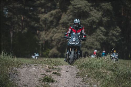 Tady na vytýčeném lesním okruhu je fakt excelentní a možnost jezdit na standardní a na Adventure Sports verzi dává poznat znatelný rozdíl. Motorka je celkově vyšší a sedlo je v 92 centimetrech, řídítka jsou výše a lehce posunuté dozadu. Sedlo se dá snížit o 2 centimetry a vhledem k tomu, že je úzké, rozdíl je znatelný. Pro mě se 174 centimetry velmi pozitivní změna.