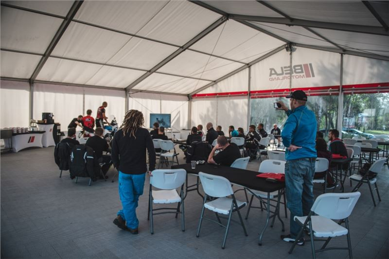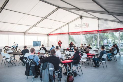 V připraveném meeting stanu proběhlo představení nových modelů, základní informace o programu dne a další organizační nezbytnosti. U čerstvě uvařené kávy to byl příjemný začátek.