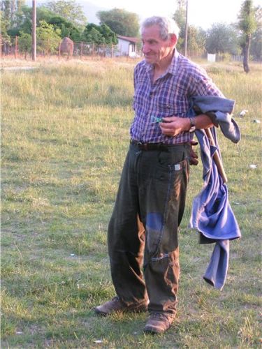 V okolí stanu je klid, ale občas se objeví rázovití místní obyvatelé, se kterými navazujeme družbu. Nejlepší je starý děda, který chodí k vodě pást tele. Je ošlehaný větrem, má jen pár zubů a přes ruku nosí sekeru. Pořád nám něco vykládá německy, ale hrozně huhlá a není mu moc rozumět. Stálého společníka nám dělá toulavá fenka, poměrně obratně běhající jen po třech nohách. Zprvu se trochu bála, ale rychle jsme se spřátelili a pojmenovali ji Kulhavka. V noci i přes den hlídá motorku i stan a když se na motorce vracím třeba z obchodu, radostně mě vítá.