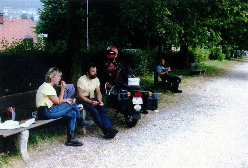 Po takových patnácti kilometrech jsme zahli opět k Dunaji. Sjeli jsme k jeho korytu a zase po pravém břehu pokračovali do městečka Engelhartszell, ve kterém jsme opět opustili dunajské údolí a stoupali zase do blízké pahorkatiny. Promotali jsme se dvaceti kilometry okresek a začali sjíždět opět k Dunaji, tentokrát ovšem už západoněmeckému. Před Passau jsme projeli ve vesničce Haibach celnici, která byla velice rázovitá a dokreslovala, jaký smysl toto zařízení má v integrující se západní Evropě. Představte si vesnickou uličku, úzkou, a v ní dva domečky vedle sebe. V jednom hraniční úředníci rakouští, v druhém západoněmečtí. Symbolické závory o tloušťce půlpalcové vodovodní trubky ční k nebi a vsadím se, že jejich čepy jsou řádně prorezlé. Z prvního domečku nevylezl nikdo, nejevil ostatně známky jakékoliv činnosti, u druhého stál jeden služný muž a odbavování jej zjevně nudilo. Když zjistil, že se mu přes hranice derou východoevropští motocyklisté, ožil a dokonce po Tondovi, který jako vždy jel za Helmutem, požadoval papíry od motocyklu. Na nás ostatních už nechtěl vůbec nic kromě pasů a po našem odjezdu upadl do obvyklé letargie.
