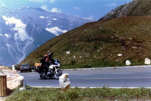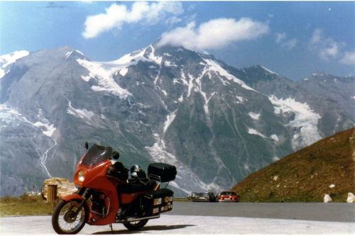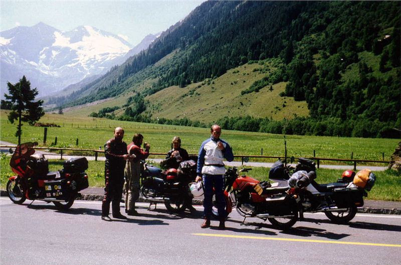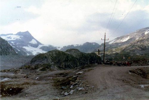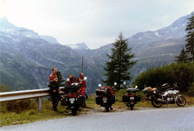 Na parkovišti stál Tonda s motorkou a ostatní kromě Jiřího, který nepostřehl stojící motocykl na rozcestí a pokračoval dále. My jsme se tím příliš nevzrušovali, protože buďto na to přijde, a nebo pojede dál a přijde na to později a počká na nás někde dále. Asi byl tak unaven bojem s výškou, že si to nedal dohromady a bylo mu divné, že nás nevidí až u tunelu Hochtor, a tak sjel na parkoviště k ledovci a tam na nás čekal. Dočkal se nás ale o dost později.