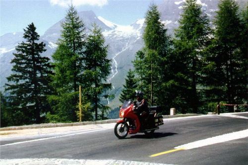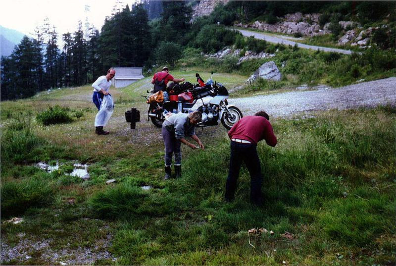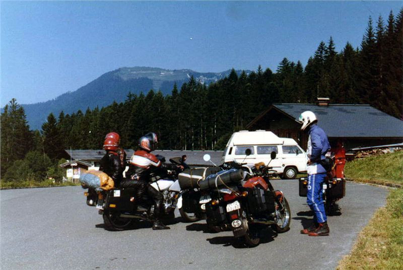 Ještě asi dva kilometry a dojeli jsme do jakési náhorní planiny, kde silnice končila a kde byl i lyžařský hotýlek. Několik lanovek a vleků v okolí ukazovalo, že je tu v zimě pěkný lyžařský areál. Kousek stranou stáli naši kolegové, zajeli jsme k nim, vypnuli motory a kochali se tichem a majestátností okolí. Bylo to tu daleko divočejší a romantičtější a také liduprázdnější než předešlá lokalita. Ticho a praktická absence lidského faktoru zde ponechala hory v daleko původnějším stavu, což bylo pro nás mnohem silnějším zážitkem (Grossglocknere odpusť!). V tomto hodnocení jsme se shodli všichni my čeští jednomyslně.
