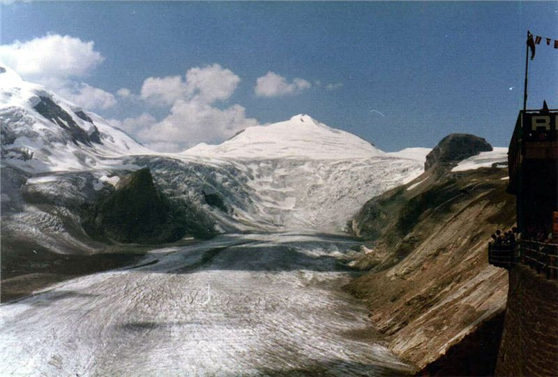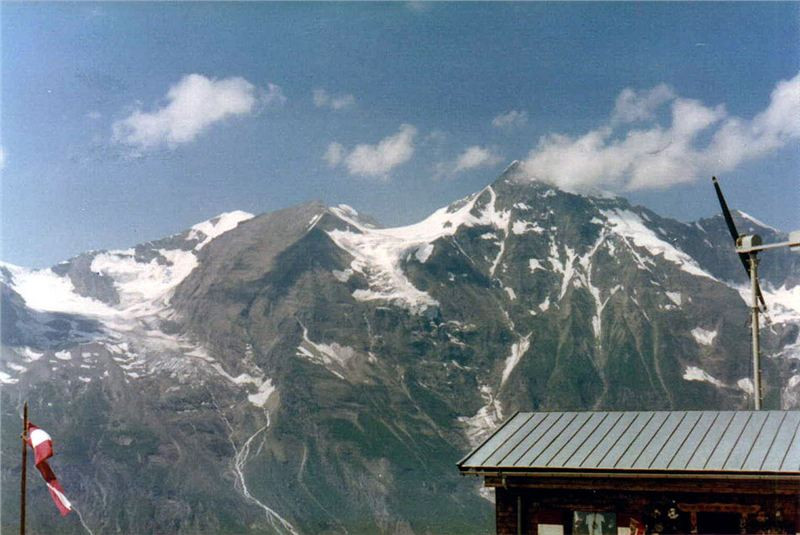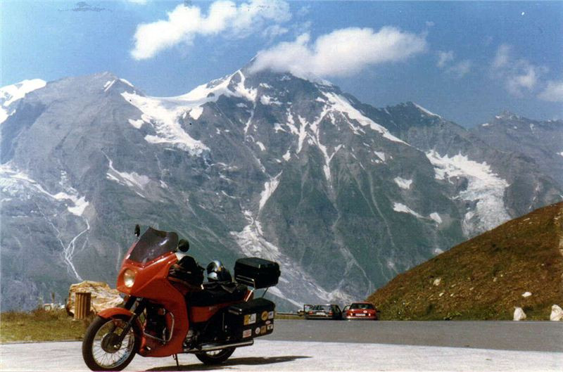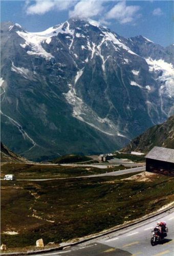 Na začátku parkoviště na nás čekal Jiří. Spolu s ním jsme nejprve projeli právě dostavované kryté trojpodlažní parkoviště, abychom nakonec skončili na původním menším parkovišti pod širým nebem.Zde jsme se opět vysvlékli z motoodění a věnovali se prohlídce této turistické atraktivity. Také jsme se trochu občerstvili po „vyčerpávajícím“ boji s kopci. Odtud, z výšky 2369 m n.m. už to půjde pouze dolů (ale to jsme netušili, že nás ještě dnes čeká něco horšího než je Grossglockner). Potom jsme chvíli koukali na mohutný ledovec a vrcholek Grossglockneru (3798 m n.m., nejvyšší to hora Rakouska) a kochali se pohledy pro nás Středoevropany trochu neobvyklými.
