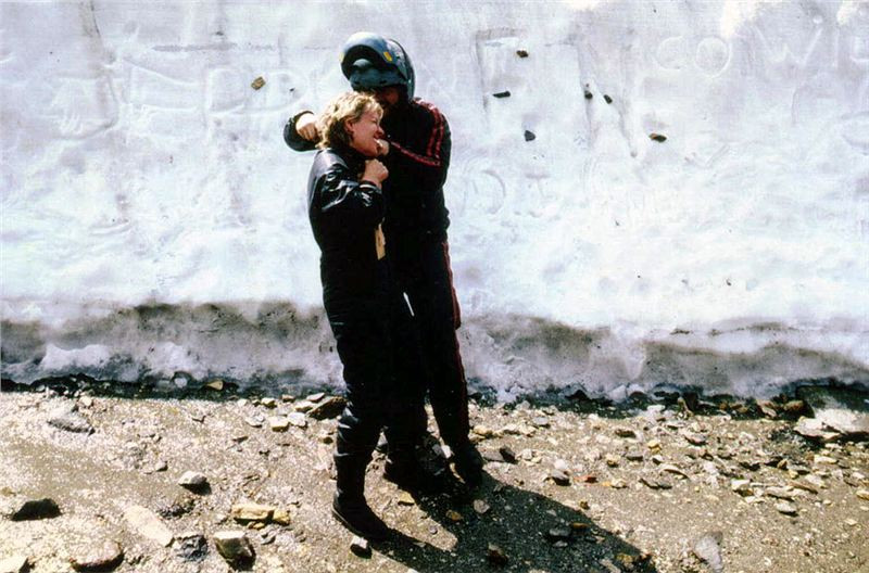 Vyjeli jsme tedy s poněkud větším zpožděním. Pokračovali jsme již mezi holými skálami stále vzhůru. Projeli jsme stádem krav pasoucích se v této výši na chomáčích vysokohorské trávy, minuli odbočku k jezeru poblíž a znova nahoru. Asi kilometr jsme jeli pod protilavinovými střechami nad silnicí a asi za dva kilometry dojeli na parkoviště u lyžařského vleku. Další cesta byla opatřena známým „lívancem“, ale protože jsem nikde neviděl kolegy, risknul jsem to a jeli jsme dále. To už byla silnička stěží dvojmetrová a opatřena zbrusu novým kobercem.