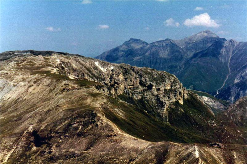 Pod průsmykem s výškou 1357 m n.m. Helmut zastavil, abychom se mohli pokochat nerušeným pohledem na masív pohoří. Nasvícená fronta hor vypadala v modrojasném počasí impozantně. Oddechli jsme si společně s našimi stroji, odlehčili svým útrobám a popili něco džusu z Helmutových zásob. S tím vším jsme samozřejmě konzumovali krásy okolí.