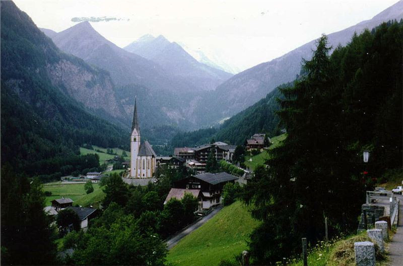 Nabažili jsme se vyhlídek a protože nebylo zase tak moc času (bylo po čtvrté), vyrazili jsme na cestu dolů. Opět nám trochu zkomplikoval život velký autobus, ale dolů jsme jej mohli předjet velice rychle. Dojeli jsme opět na křižovatku Guttal a pokračovali dolů. Po chvilce jsme vjeli do lesního pásma, projeli mýtem a za chvíli už jsme vjeli do vesničky Heiligenblutt, která se vždy v zimě změní ve velké lyžařské centrum.