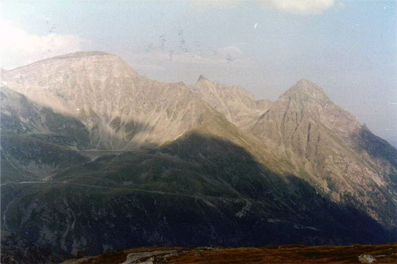 Prošel jsem se po okolí, nafotil masív Goldberg gruppe, jehož vrcholky přesahují tři tisíce metrů a prohlédl si přístupové údolí a komunikaci po níž jsme přijeli, vinoucí se po jeho úbočích.