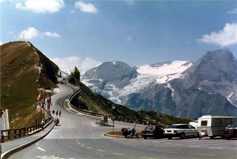 Klesali jsme tedy pozvolna dolů ke křižovatce Guttal ve výši 1859 m n.m. Tam jsme se opět shromáždili a odbočili vpravo na vyhlídku Franz-Josefs-Höhe. Při cestě dolů jsem si všiml většího počtu československých aut a také několika kempových Avií, které supěly pomalu pomaloučku směrem vzhůru. Za nimi se vinul docela slušný had osobních aut, která v těchto serpentínách neměla prakticky vůbec šanci Avie předjet. Řidiči těch dvou kempů tomu také přispěli, že se přilepili jeden na druhého a vytvořili tak překážku jako hrom. Měli by si uvědomit, že v horách nejsou sami a podle toho se chovat.