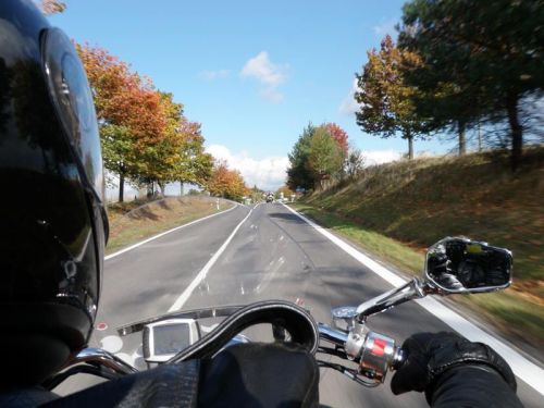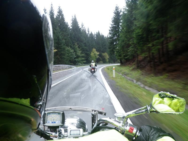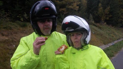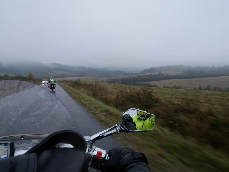 Při sjezdu do jednoho údolí se teplota změní na celých plus osm, tak to už je mazec, rychle někam dál, zase do chladu. Projíždíme podzimní krajinou a vnímáme její barvy. Vzpomínáme na kamaráda Honzu Patáka a děláme pro něj snímečky. Vždy při každém cvaknutí komentujeme, že Honza bude mít „prsty v hubě“. No je škoda, že nemohl s námi. To by si užil.