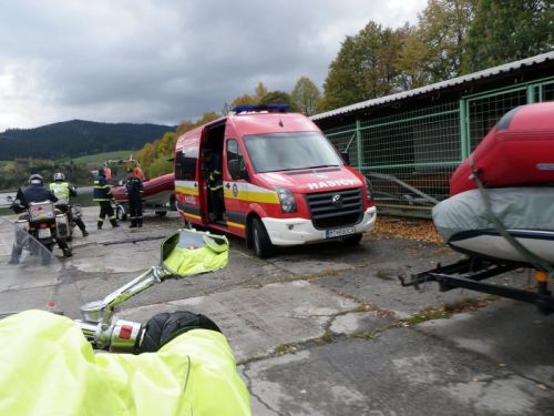 Sjíždíme do Oravy a dáváme si u přehrady dostaveníčko s místními hasičskými sbory, které zde mají cvičení. Parkujeme mezi jejich vodní technikou a okukujeme, stejně jako oni naše motorky. Slovo dalo slovo a zjišťujeme, že je mezi námi jeden voják z povolání, jeden hasič, jeden polda a jeden záchranář. Taky paragánka, takže jsme tak nějak komplet družstvo, které by mohlo směle zastupovat národní barvy. Jen ty čluny nemáme. Hasiči jsou z nás unesení, a když jim vysvětlujeme kam že jedeme, neskrývají svůj obdiv.