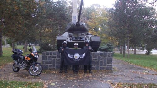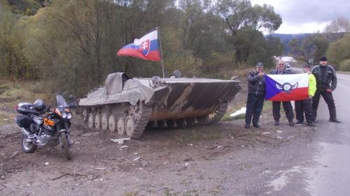 Původně jsme měli v plánu vyrazit ještě na prohlídku Belianských Tater, ale je zima a začíná pršet, a tak stáčíme na Spišsku Belu a mažeme v dosti silném větru dál na Lubovňu, Bardějov a přes Zborov, kde jsou hřbitovy vojáků československých legií, až do Svidníka, kde dáváme cigárko v muzeu děl, tanků a letadel. Generál je ve svém živlu a tuhle vojenskou techniku si důkladně prohlíží. Pokračujeme přes Komárniky a nemůžeme vynechat zastávku na Duklianské vyhlídkové veži v Dukelském průsmyku. Náš známý průvodce z let předchozích, který je zdejší „inventář“, nám tentokrát nemůže věnovat službu výkladem, neboť častý výpadek proudu v objektu jej nutí být mimo výtah. Jsme však rádi, že jej zde potkáváme. Zdravíme ho a on nám věnuje opět nějaké pohlednice na památku. Prohlížíme si Dukelský průsmyk z věže a výklad nám dává jeho mladší kolega. Nebyla to tady tehdy ve čtyřiačtyřicátým žádná prdel…